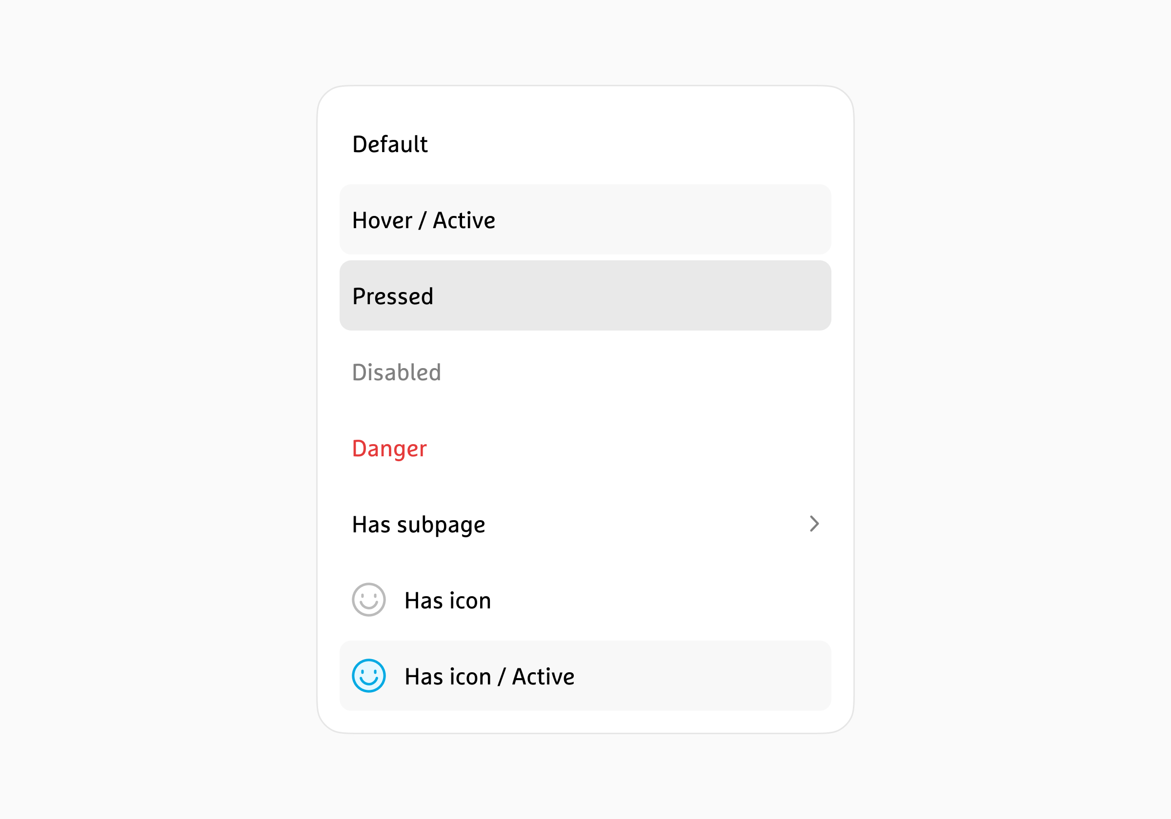 - Pressed – Dient bei Nutzerinteraktion als Feedback, dass das Menu Item geklickt wurde
